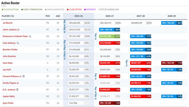灰熊这笔交易后是12+1名单(双向合同),这12人的薪水高达1.92亿,已经超过奢侈税起征点1.879亿,但是比二奢线2.078亿还有一定的距离,灰熊还可以用底薪、中产特例来完成15人大名单。